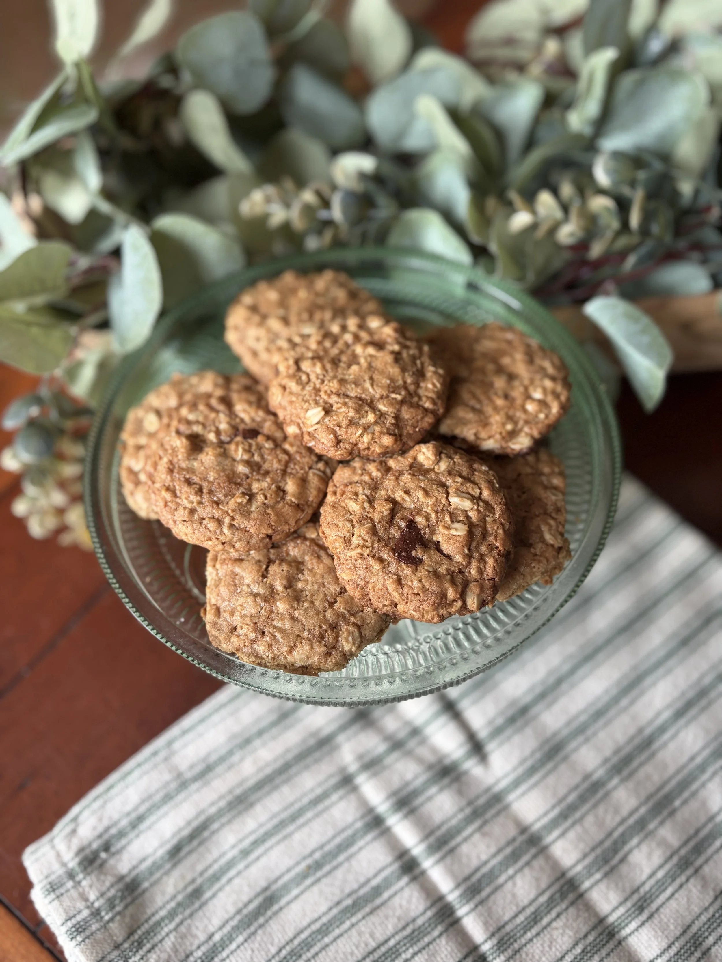 These cookies have that perfect balance — slightly crunchy on the outside, soft and chewy in the center, and just sweet enough. They feel hearty because of the oats and fresh flour, but the chocolate still makes them feel like a treat.